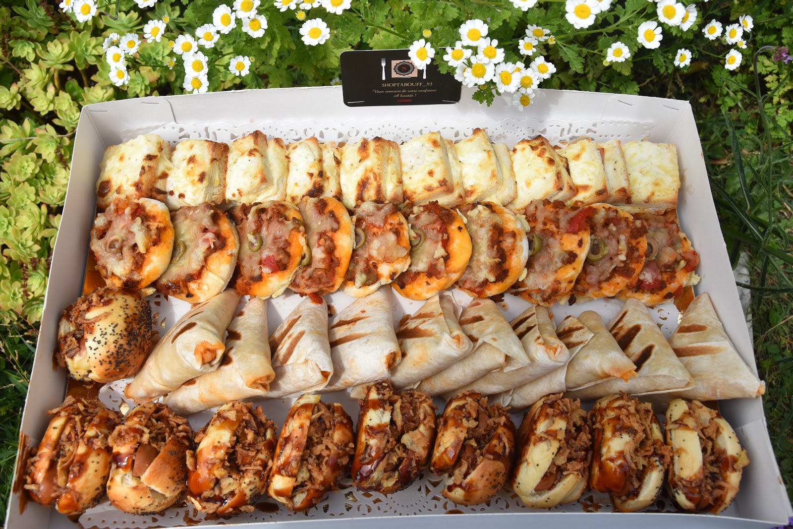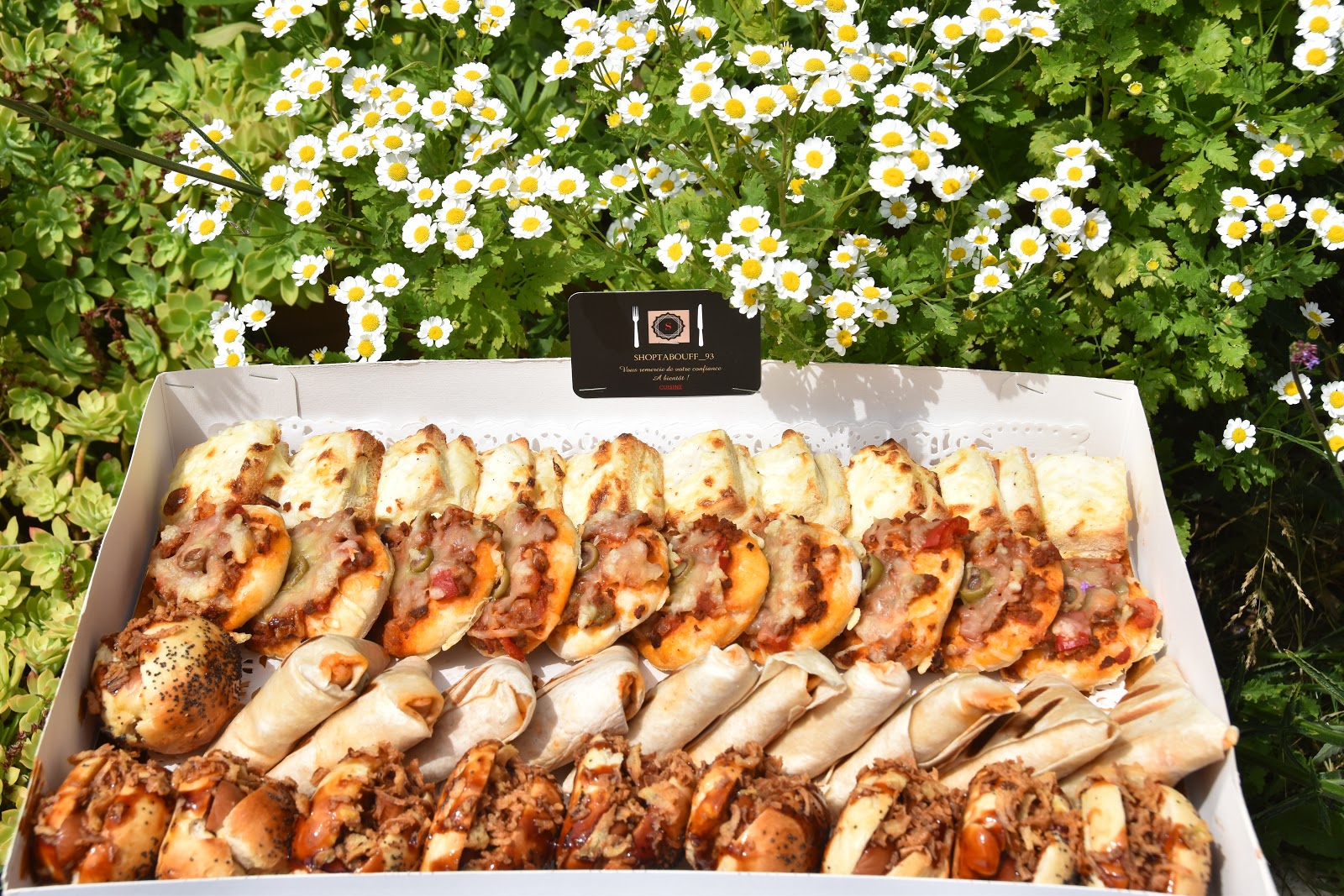 Premièrement, la présentation du plateau est vraiment parfaite, vous n’avez même pas envie de le déballer tellement, c’est jolie ! Coup de cœur pour les tacos viande hachée aux trois poivrons, les mini-pizzas, les croque monsieur au fromage qui était succulents. Tout est fait maison, c’est vraiment délicieux. Les cupcakes étaient gourmand à souhait et mention spéciale pour ceux au spéculos, mes préférés ! Shoptabouff_93 met en avant une cuisine riche, conviviale et créative qui procurera à vos convives plaisirs et émotions. Laissez vous tentez par nos gourmandises salées et sucrées de Shoptabouff_93 !