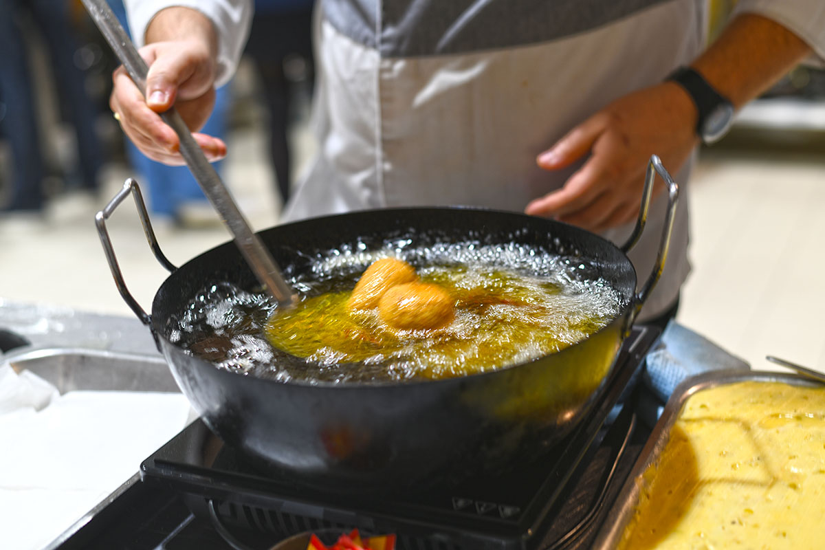 À croquer comme à cuisiner, l’Olive d’Espagne attire tous les regards ! Accrochée à l’olivier, elle se laisse admirer à la croisée des routes espagnoles, ainsi les Olives d’Espagne se sont associer à L’atelier des Chefs afin d’organiser une fiesta gourmande le vendredi 16 novembre à Paris et le vendredi 30 novembre à Lyon ! Cet atelier de cuisine était guidé par des Chefs, au menu, c’était œufs toqués aux olives noires d’Espagne et jambon ibérique, croquettes d’olives espagnoles au fromage ibérique et pimenton de la vera et tartines au magret fumé, fromage de brebis et olives vertes en brunoise, sans oublier de délicieux cocktails, à base de saumure d’olives vertes, vodka, citron jaune et purée d’abricots ou encore de thé vert infusé aux olives d’Espagne. Cette soirée était savoureuse et chaleureuse. Lors de cet atelier, il y a eu la découverte du Toc œuf, ainsi que la reconnaissance et l’identification des différents piments et surtout savoir comment paner. Cet atelier était excellent et parfait pour s’éveiller aux saveurs ibériques.