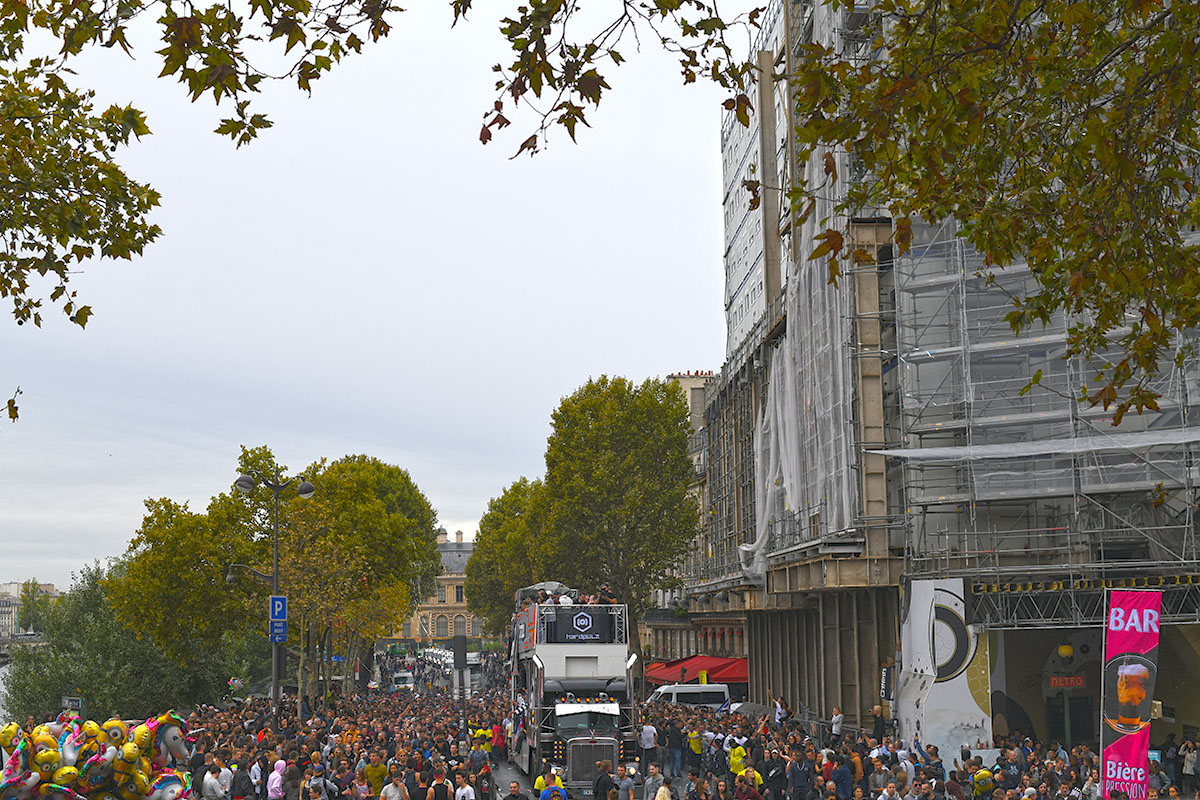 Évènement incontournable de l’année, la Techno Parade a célébré ses 20 ans samedi à Paris avec la crème des DJs français et internationaux. Le parcours de la Techno Parade a été raccourci d’un kilomètre par rapport à l’an dernier et fait actuellement 5 kilomètres de long entre le Louvre et la Place d’Italie. L’événement a débuté à 12 heures sur le quai François Mitterrand pour s’achever à 19 heures sur la place d’Italie, ainsi 16 chars avec des concepts différents et innovants. Techno, house, trance, drum’n’bass et autres musiques électroniques on résonner dans les rues de Paris, avec le soutien de la Région ! Le programme était à la fois complet et varié avec les meilleurs DJ’s français et internationaux du moment avec des sets House, Dubstep, Drum’n’bass, Transe, Techno, Hardcore et Electro. Cette année, la Techno Parade a fêté en beauté son anniversaire, l’événement était attendu, ainsi des dizaines de milliers de jeunes ont pu danser au rythme des sons techno, house, trance, drum’n’bass ou hardcore, l’événement fut incroyable jusqu’à la fin et encore joyeux anniversaire à la Techno Parade qui fait de Paris la capitale de la musique électronique !
