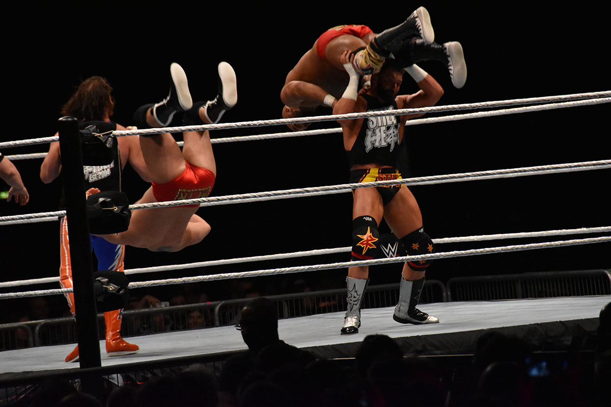 Pour l’occasion, les stars et les divas de la mythique de la WWE étaient présentes pour notre plus grand bonheur : Roman Reigns, Seth Rollins ou encore Dean Ambrose, Sasha Banks, Bayley, Baron Corbin… C’était l’occasion de découvrir les affrontements entre Roman Reigns, Seth Rollins, Braun Strowman, Finn Balor, Alexa Bliss ou encore Sasha Banks qui ont pris leur revanche après la 34e édition de WrestleMania, le 8 avril à La Nouvelle-Orléans. L’ambiance était survoltée et les catcheurs on enflammer la scène avec des combats explosifs. Ses athlètes ont pu s’affronter dans une salle surchauffée et survolté, mêlant émotion et une énergie incroyable.